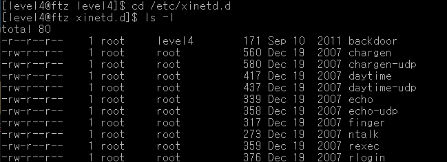- /etc/xinetd.d/에 백도어를 심어놓았다고 했으니 해당 위치로 이동해본다!